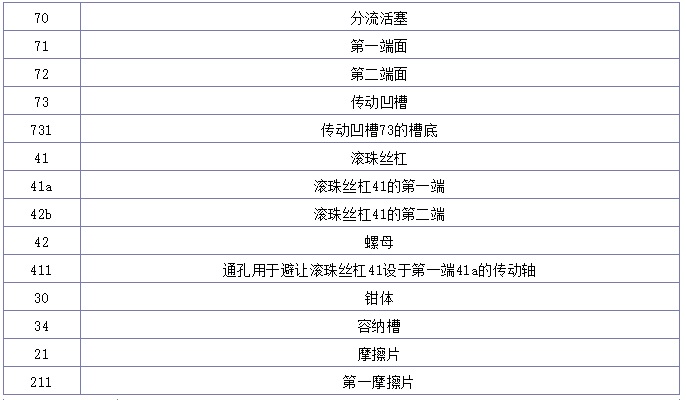 - 結(jié)構(gòu):該裝置包括制動電機、減速器、滾珠絲杠和分流活塞。滾珠絲杠一端連接減速器,另一端驅(qū)動分流活塞,通過分流凸起傳遞驅(qū)動力推動摩擦片,實現(xiàn)制動。