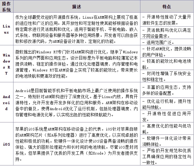 ARM架構(gòu)上常用的操作系統(tǒng)種類繁多,涵蓋從開源平臺到專有系統(tǒng),為基于ARM的設(shè)備提供了多樣化的軟件生態(tài)支持。以下是一些典型的操作系統(tǒng)及其在ARM架構(gòu)上的特點和應(yīng)用優(yōu)勢。