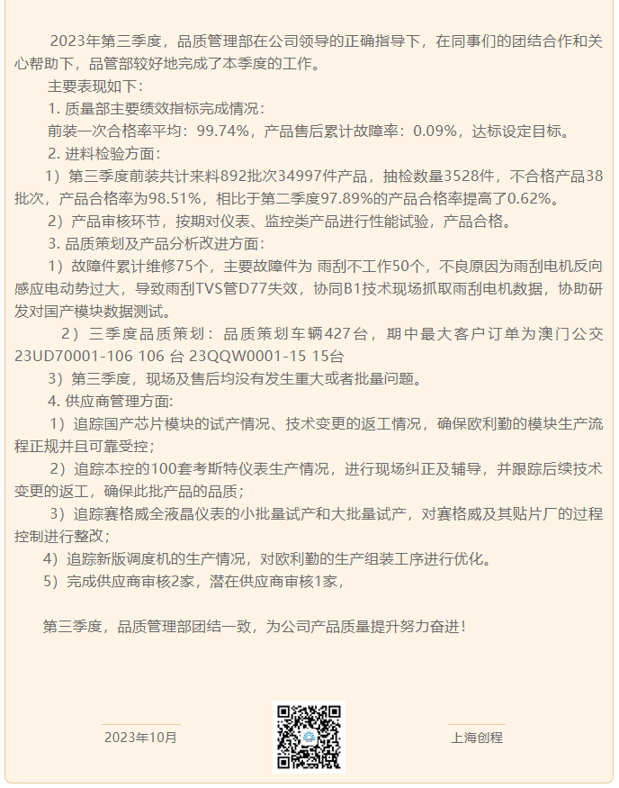 2023年第三季度評優 —— 優秀團隊【品管部】