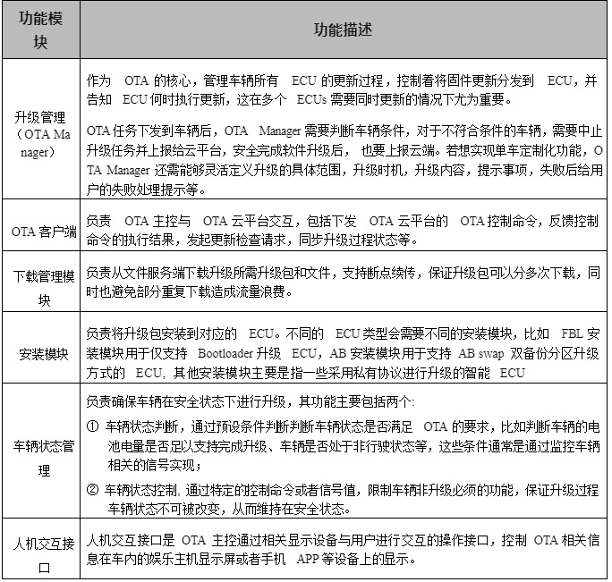 ② 車輛控制:對于影響車輛安全的升級,整個升級過程需要保持在一種安全狀態(tài),因此, OTA 主控需要具備一定車輛功能控制能力,根據(jù)不同的升級類型,控制車輛的功能狀態(tài)。