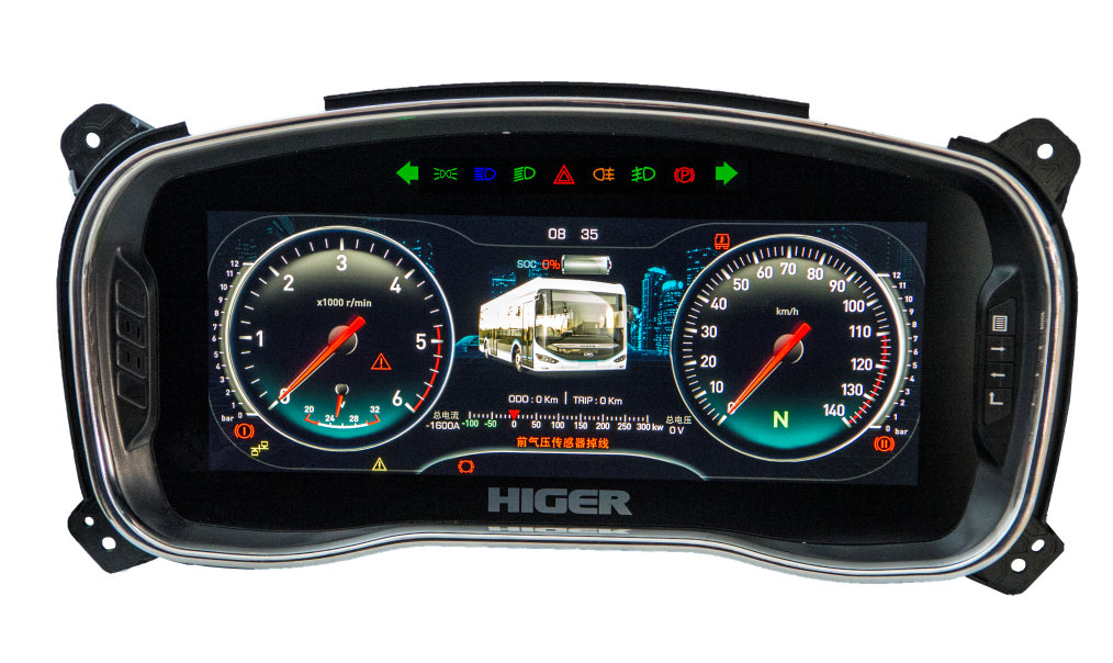 - 4個步進電機驅動的指針表盤 - 20個LED符號片 - 多個TFT符號片 - 7寸TFT彩色液晶屏 - 一個數字語音報警器,語音播報(和弦、數字語音),播報內容可定制 |